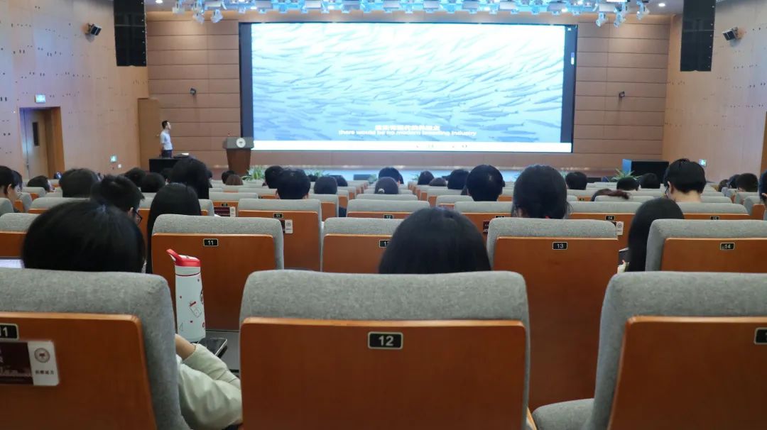 学院党委副书记李庆泉老师进行致辞后,主讲人结合水产行业的实际案例——海大集团是如何破解南美白对虾种苗“卡脖子”问题,从而引出种苗在水产养殖中的关键性,通过介绍水产行业的发展历程和现状,帮助同学们建立整个行业发展现状和产业链的框架性认知。