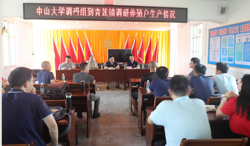 当天下午,莫德林教授一行包括三位动物学博士生党员首先来到清远市阳山县青莲镇与当地村镇领导和养殖户进行座谈交流。会上,当地村镇领导对发卡平台 考察帮扶组的到来表示热烈欢迎,并对当地养殖情况进行了介绍。支部书记莫德林教授介绍了此行的目的和支部人员组成情况,随后各位支委以及党员与养殖户们进行了互动交流,耐心解答了有关“鱼为什么长得慢”“小牛在什么情况下会拉稀”“安格斯牛不带仔”“仔猪体弱多病有什么办法改善”等具体实践问题。同时,为帮助养殖户们解决今后可能出现新的问题,支部建立了清远养殖户问题咨询平台,该平台沟通专业人士和养殖户,使养殖户随时可以获取解决问题的办法。