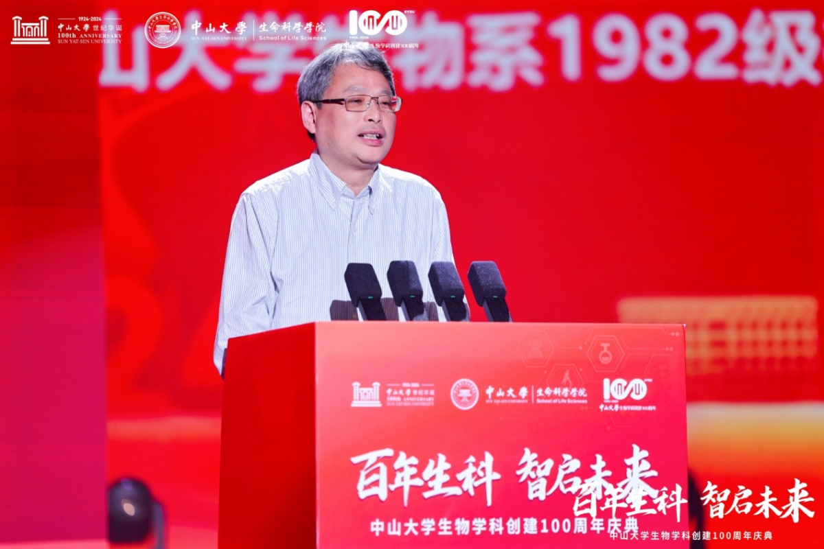 党建工作、人才培养成效和科研实力稳步提升,服务国家重大战略能力显著增强。在下一个百年新征程中,学校衷心期盼学院能继续弘扬中大生科百年精神,以科技发展、国家战略需求为牵引,努力开拓创新,不断提升生物学科的整体实力和办学水平,他提了三点期望,一是要坚持党的全面领导,推动党建与事业深度融合。二是要勇于深化教育改革,全面赋能创新人才培养。三是要提高科技创新水平,更好服务国家和广东高质量发展。他表示,学校将一如既往地支持生命科学学科的建设和发展,希望学院在社会各界和广大校友的关心支持下,在全体师生的团结拼搏下,开启生科辉煌的新篇章!