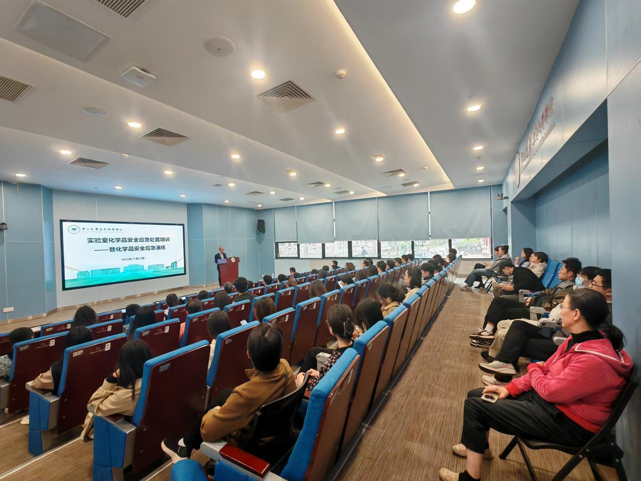 2025年11月27日,学院在生命科学楼2号楼102讲学厅顺利开展实验室安全应急处置培训暨化学品安全应急演练。各实验室安全员及危险化学品使用、管理人员全员参会,通过“理论授课+实战演练”的形式,强化安全意识,提升应急处置能力。