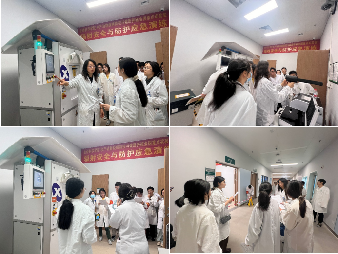 理论培训后,全体参训人员迅速转入实战演练状态。活动组织周密,成立了由分管安全领导李剑峰副院长任总指挥、实验室负责人任现场指挥的专项工作组。演练前,现场已规范配齐环境剂量监测仪、防护装备及应急物资,并划定了明确的警戒与疏散路线。演练紧密围绕“辐照程序停止异常”、“安全连锁失效”及“突发漏水” 三类典型风险场景展开。面对模拟险情,涉辐岗位人员及安全管理人员反应迅速、处置规范:立即执行紧急停机、切断电源、启动环境辐射监测,并同步实施逐级上报与人员疏散流程。整个演练过程指令清晰、衔接有序,有效检验了预案的实操性与团队的协同作战能力。