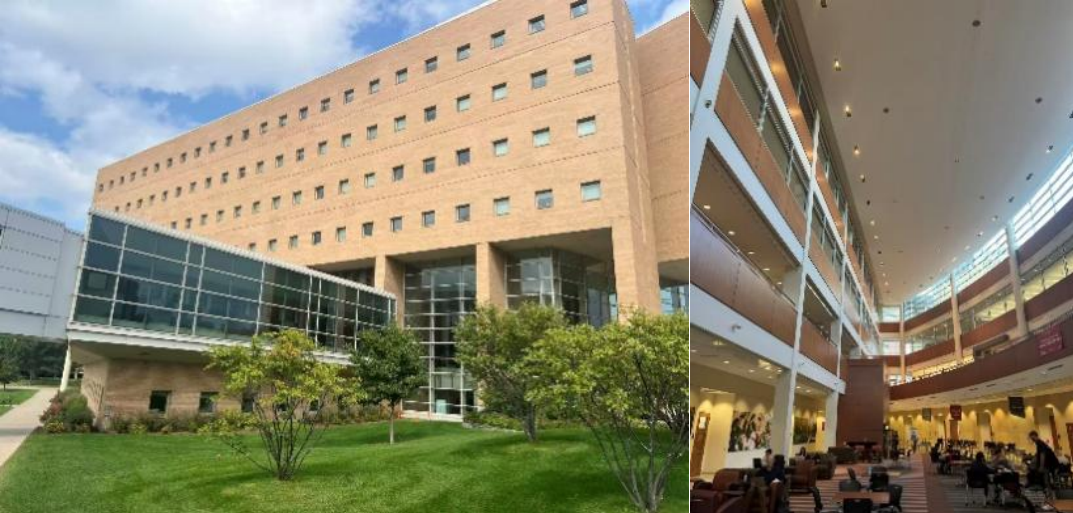 在研学的空暇中,我还联系了一些其他学校的教授,前往拜访的同时也一并参观其校园的景色。其一拜访的为UW-Madison的Quanyi Hu教授。UW-Madison规模较小,当时所见有几栋制式较为现代化的大楼(图10),且与医院等建筑错杂而立。学校南北两侧均被有湖泊环抱,景色宜人。