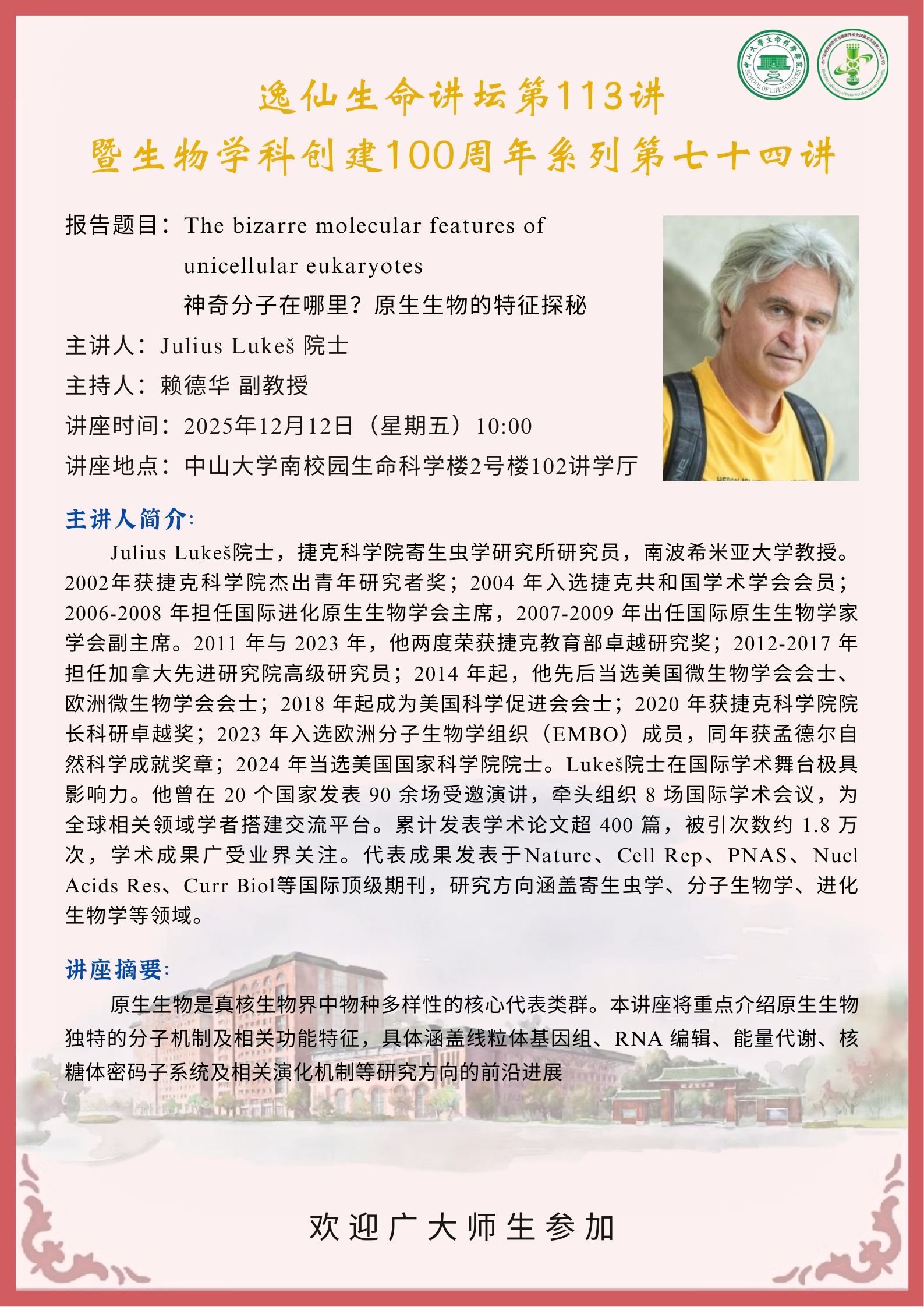 2025年12月12日发卡平台 逸仙生命讲坛第113讲:The bizarre molecular features of unicellular eukaryotes