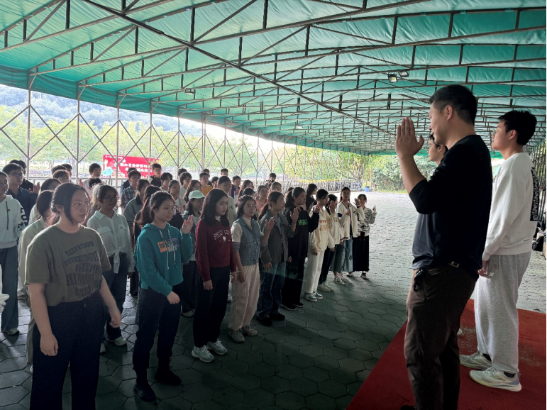 抵达教育基地后,同学们在教官的组织下进行了准备活动,重整肃容,以更加饱满的精神面貌投入接下来的活动。