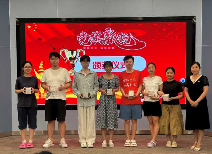 经过两轮紧张激烈的知识较量,竞赛结果终于尘埃落定。第二、四、五小组在众多参赛队伍中脱颖而出,分别斩获本次知识竞赛的第一、二、三等奖。周婷老师为每组获奖队伍依次颁发奖品并合影。同时,支委会还贴心地为所有参赛成员准备了纪念礼物,这不仅是对大家参与活动的感谢,更是对大家积极学习、努力进取精神的肯定。