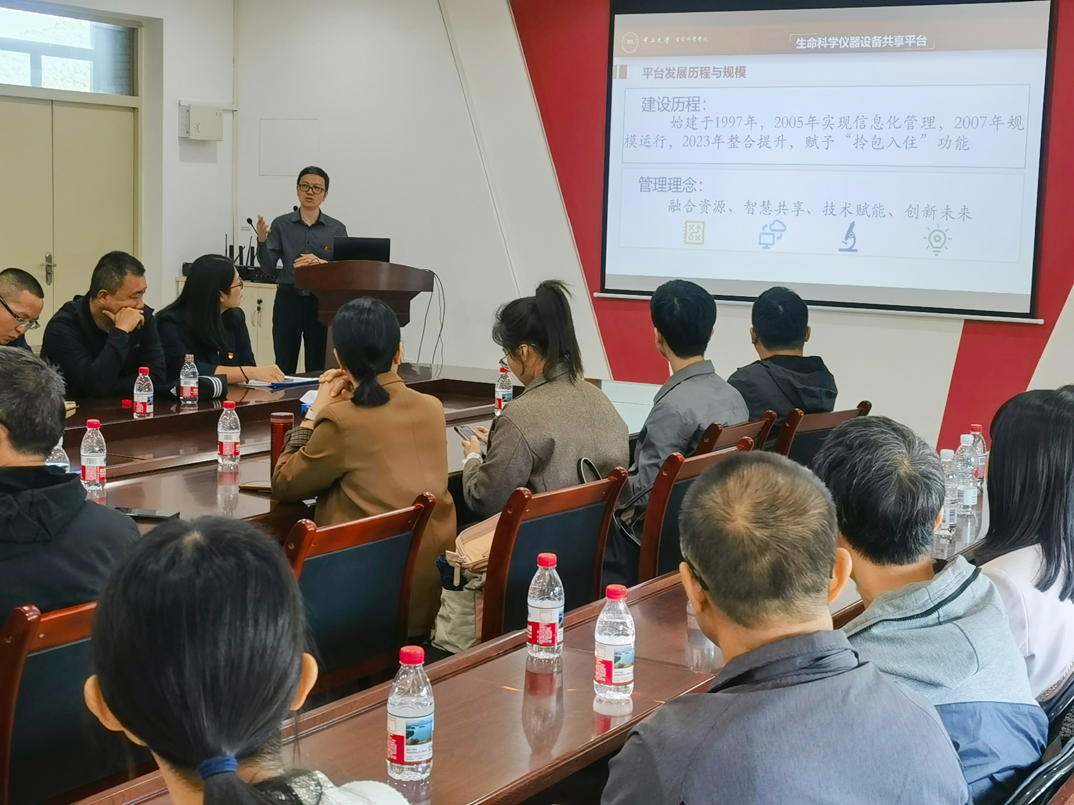 座谈中,发卡平台 实验中心副主任何键同志结合中心平台建设、技术支撑与科教融合方面的创新实践经验,围绕“四个聚焦”展开交流:在集约化管理方面,构建“1+N”仪器设备共享平台,每年支撑国家级重点项目150余项,高质量论文发表超250篇。在智能化管理与安全运维方面,平台集成数据可视、智能预约、远程监控等功能,建立完善的仪器维护与质控体系,通过每日环境巡查、故障快速响应等措施,保障设备稳定运行,同时深入践行“安全第一”理念,近十年未发生重大安全事故。针对人才队伍建设,实施“双向融合”培养计划,鼓励专业技术人员到国内外进行交流学习,加入科研团队,既精准对接科研需求又提升自身业务水平。在科教融合创新层面,建立“科研仪器开放共享+创新课程双轨制”,一方面将大型科研仪器面向本科生开放,另一方面通过面向本科生开设《生命科学实验仪器与使用》等课程,结合多色流式、质谱分析等技术展示,激发学生科研兴趣,真正实现“科研反哺教学、教学促进科研”的良性循环。