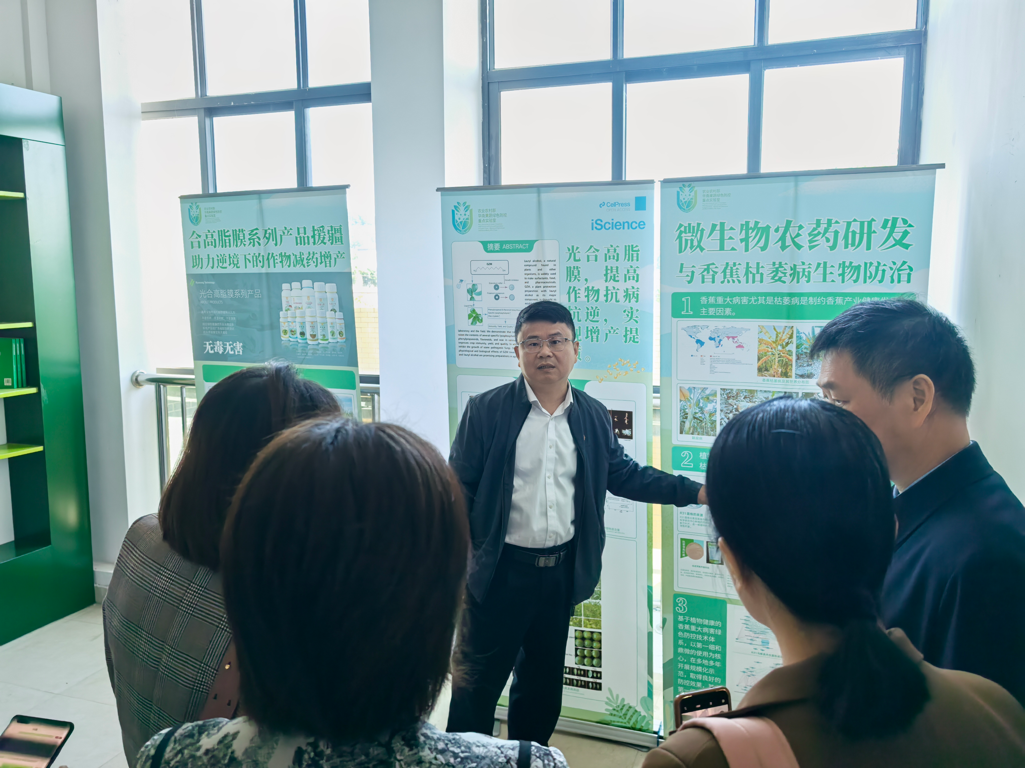 活动伊始,仲恺农业工程学院农业与生物学院院长喻国辉教授对发卡平台 实验中心党支部一行表示热烈欢迎。他表示,此次结对共建是落实教育部“对标争先”建设计划的重要实践,通过“一融双高”党建引领搭建的交流平台,将有效促进两校在教学科研、人才培养、社会服务各项事业高质量发展。喻国辉教授系统介绍了学院“三全五育”工作体系,分享了基层党建工作经验,带领我们参观农业农村部华南果蔬绿色防控重点实验室和本科教学实验室,重点介绍了实验室自主研发的两类市场转化成果:一是通过援疆项目实现逆境作物减药增产的高脂膜系列产品;二是针对香蕉枯萎病建立的“病种精准鉴定-生物防治”微生物农药体系,相关产品与技术已在全国推广应用,引发与队人员热烈讨论。