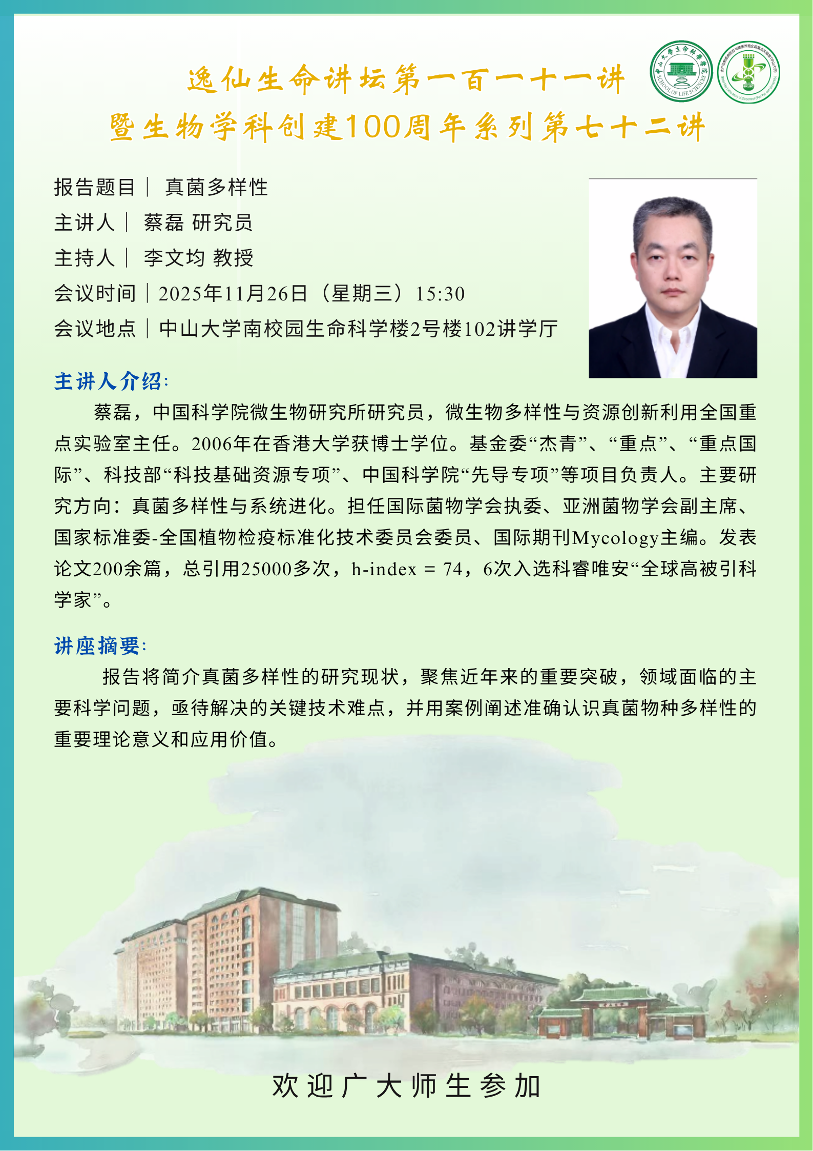 2025年11月26日逸仙生命讲坛第111讲:真菌多样性