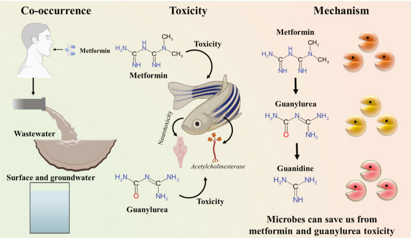 3.2 二甲双胍(metformin)是II型糖尿病的一线治疗药物,作为一种新污染物,二甲双胍(metformin)及其生物转化产物guanylurea随人们生活进入到水体,在水生环境中对水生生物产生一定的毒性作用,本文综述了二甲双胍及guanylurea的全球分布,并提出了可增强其降解的微生物策略,为其日后的治理工作提供新思路