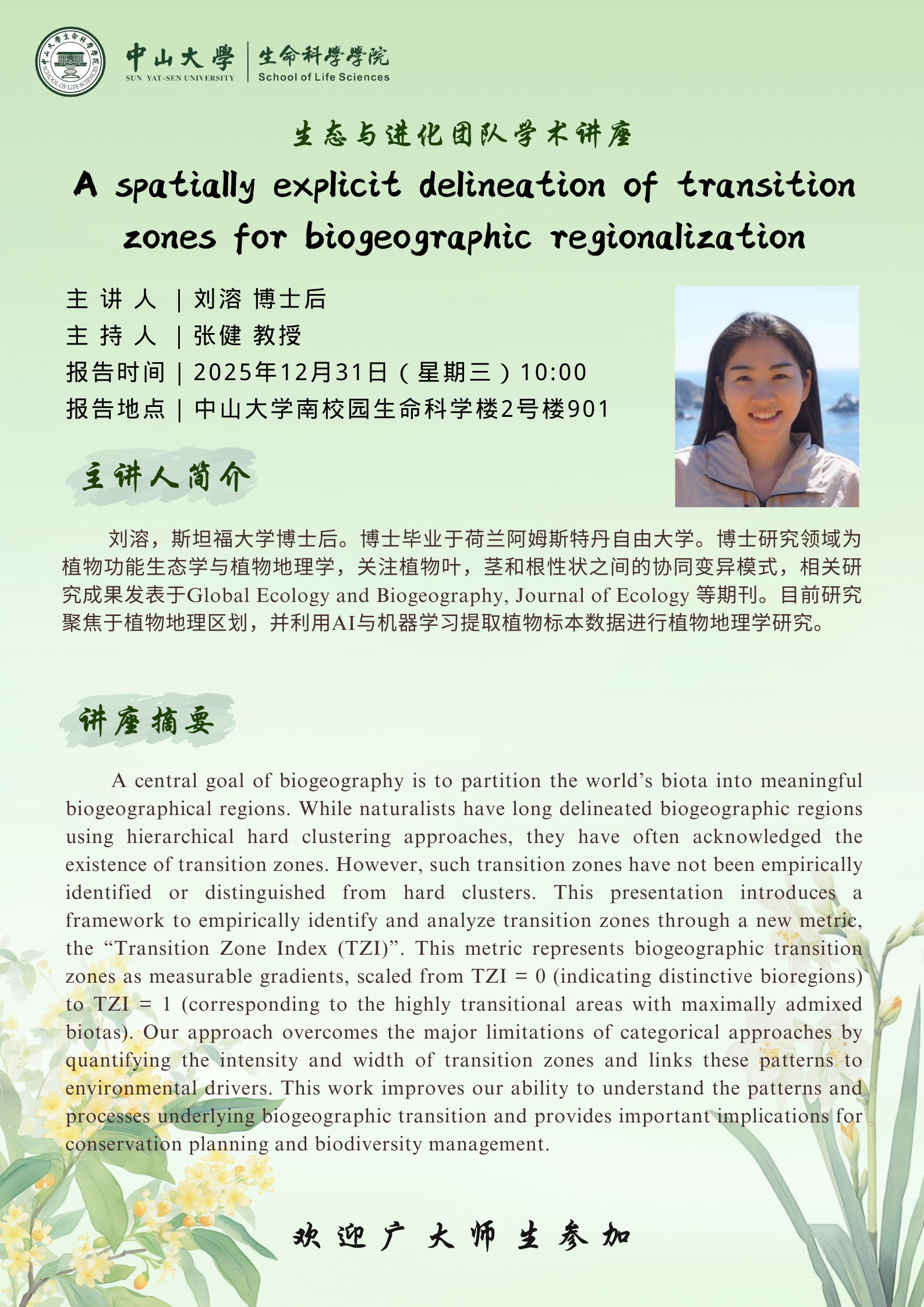 • 2025年12月31日生态与进化团队讲座:A spatially explicit delineation of transition zones for biogeographic regionaliz