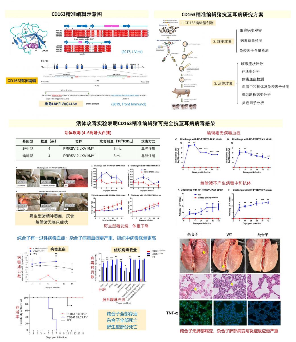 5. 常规育种对于抗病性新品种培育通常难以奏效,而基因编辑育种可以有效突破这种困难。CD163精准编辑猪可以完全抵抗每年给中国养猪业造成上百亿损失的蓝耳病,具有巨大的应用前景。