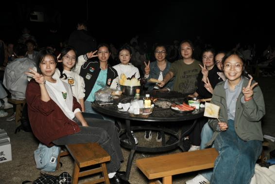 结束了一天的活动,同学们根据小组分配到的食材自主动手,开始了今晚的烧烤聚餐活动。各小组分工协作,制作出了富有烟火气的晚饭,在忙碌过后吃到了自己亲手制作的美食。