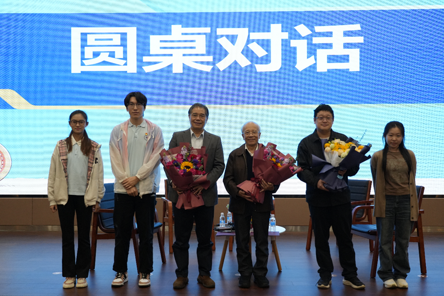 本次分享会——圆桌对话,庞义教授、李鸣光教授和崔隽教授与学生代表姜子煜、李亦蒙同学面对面交流,围绕大学适应、科研计划、成长规划等核心话题展开了深入的交流。