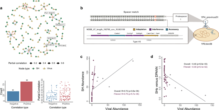 考虑到CPR和DPANN细胞通常需要依赖其他原核生物共生生存,本研究将这些共生微生物引入病毒-宿主互作框架,构建了更为复杂的三元关系模型(图2)。分析进一步表明,与CPR或DPANN紧密共生的微生物可能为其提供庇护,从而增强宿主的抗病毒能力,维系共生体系的稳定与共同利益。这⼀互作模式揭示了⼀种潜在的“源-汇”动态(source-sink dynamic):在共生体系中,CPR/DPANN细胞因具备抗病毒能力而持续繁殖,成为病毒难以侵染的“汇”;而环境中新生的、尚未建立共生关系的CPR/DPANN细胞则更容易被病毒侵染,成为病毒复制与传播的“源”。由此,病毒、CPR/DPANN及共生宿主三者实现了长期共存。