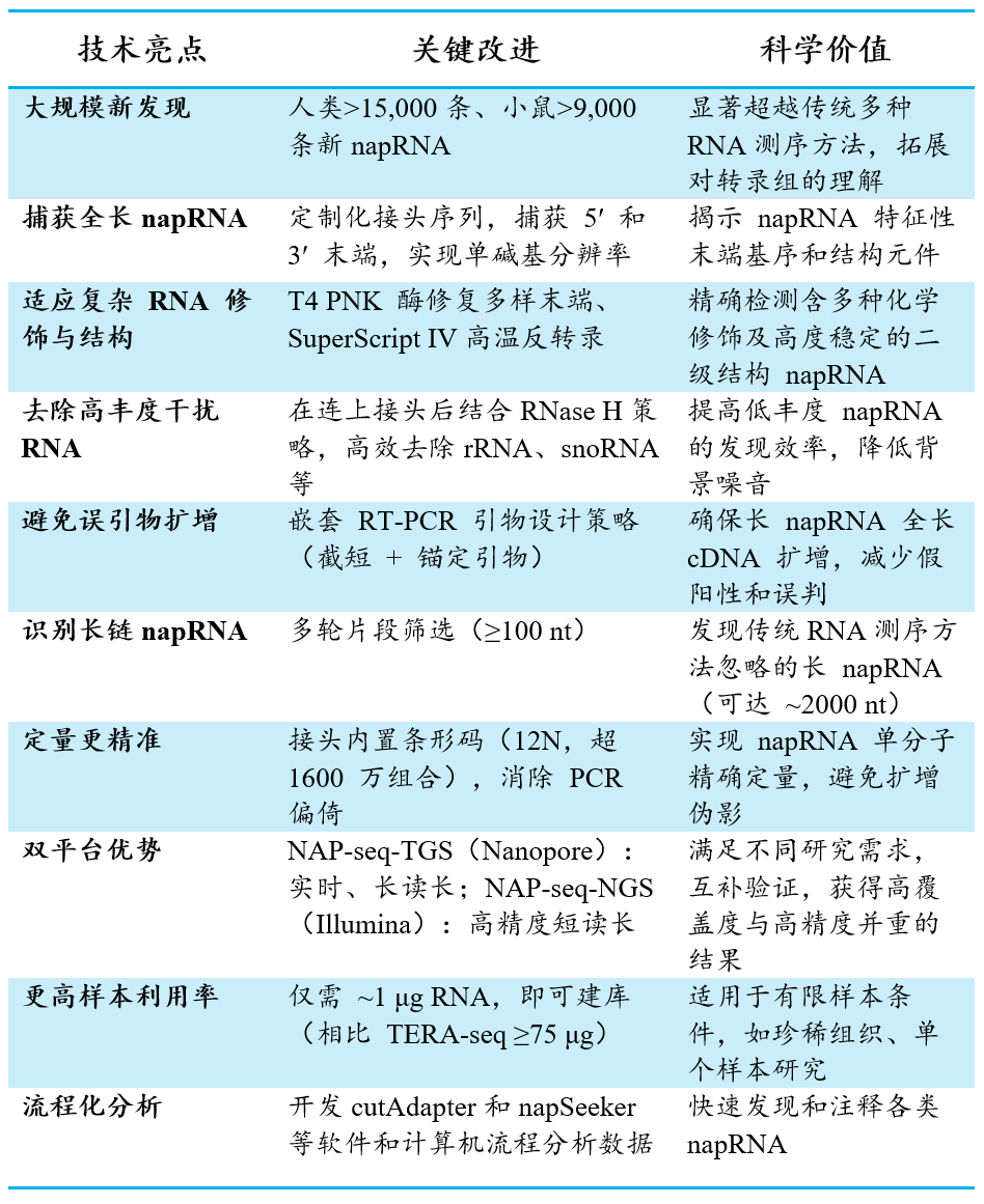 这些napRNA不仅通过作为非编码RNA(ncRNA)调控多种生物学过程,还作为加工产物解析特定的RNA生物生成过程。然而,由于其长度异质性、末端修饰多样性以及复杂的二级结构等,鉴定这些napRNA面临巨大挑战。
