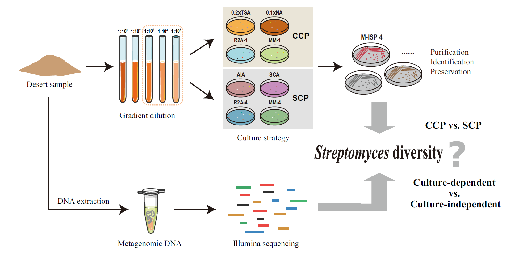 2.2 通过系统对比分析高通量测序(免培养)与传统纯培养方法在微生物多样性研究中的差异性,建议在未来的多样性研究中,同时采用“免培养+纯培养”,两者互为补充,提升研究可靠性,本研究的亮点是构建了极端干旱沙漠生境链霉菌的高效分离、培养方法,积累了宝贵的极端链霉菌资源